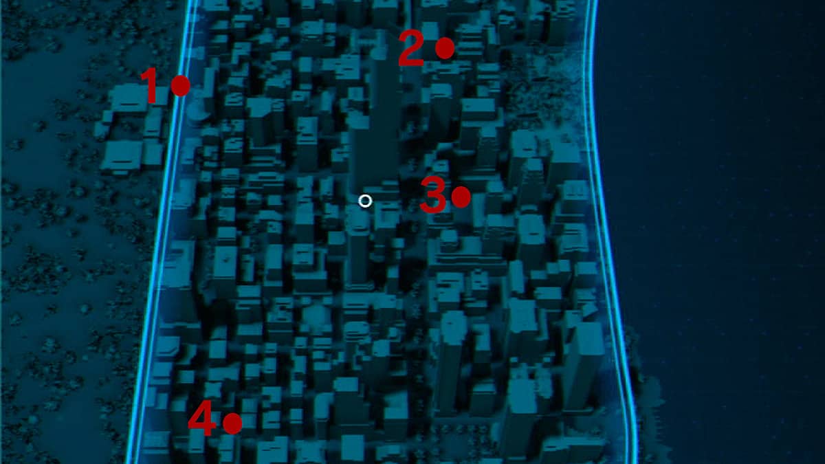 Emplacement #1 : Le premier se trouve dans le coin le plus à gauche de la zone. Prenez une photo du mot « moderne » sur le bâtiment à l’emplacement.