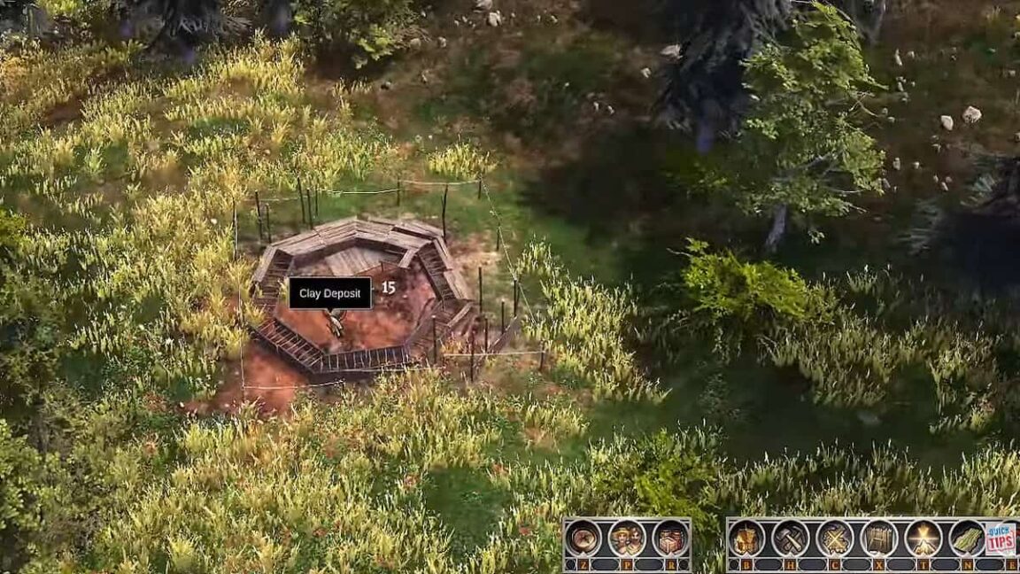 Tout en recherchant des ressources sur la carte, vous pouvez rencontrer un point d’intérêt appelé « Gîte d’argile ». Il est important de trouver un dépôt d’argile le plus tôt possible ou vous serez coincé à utiliser du bois pour la construction.