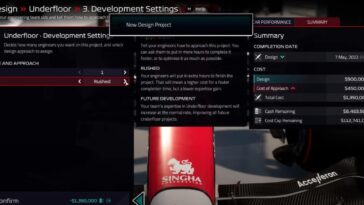 Parmi ces trois attributs, ceux dont vous devez vraiment vous soucier sont Retour d’information et Fosse Équipage La gestion. Plus l’attribut Feedback est élevé, plus le processus de création de configuration sera rapide. Et plus l’attribut Pit Crew Management est élevé, plus les arrêts aux stands seront rapides.