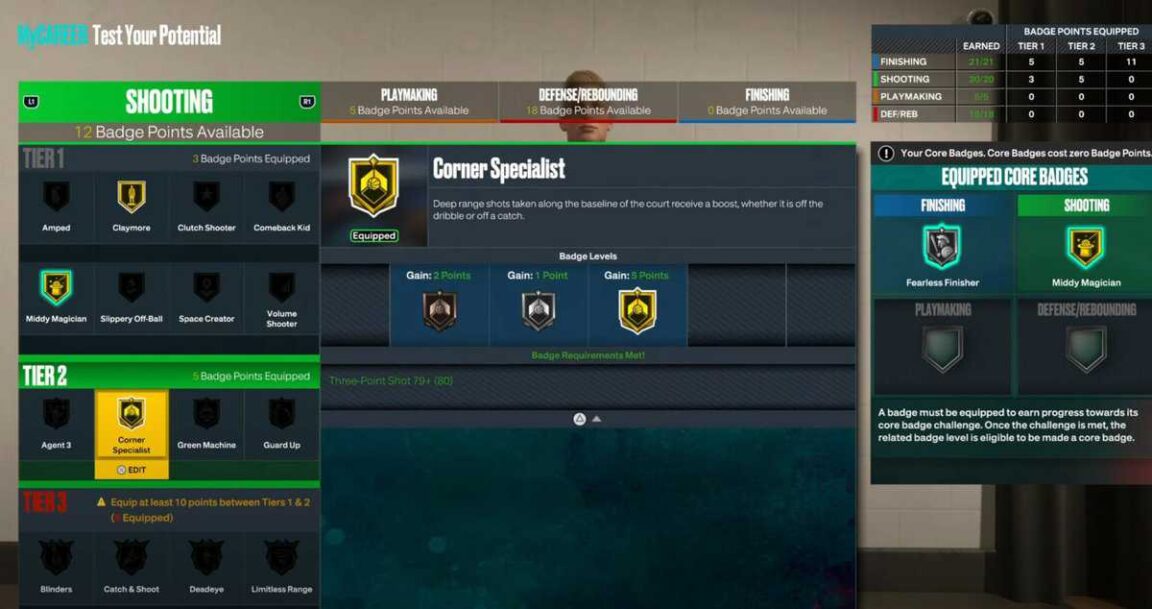- Amplifié : les joueurs commettent beaucoup de fautes lorsqu’ils sont fatigués. Ce badge les empêche de faire de faux pas.