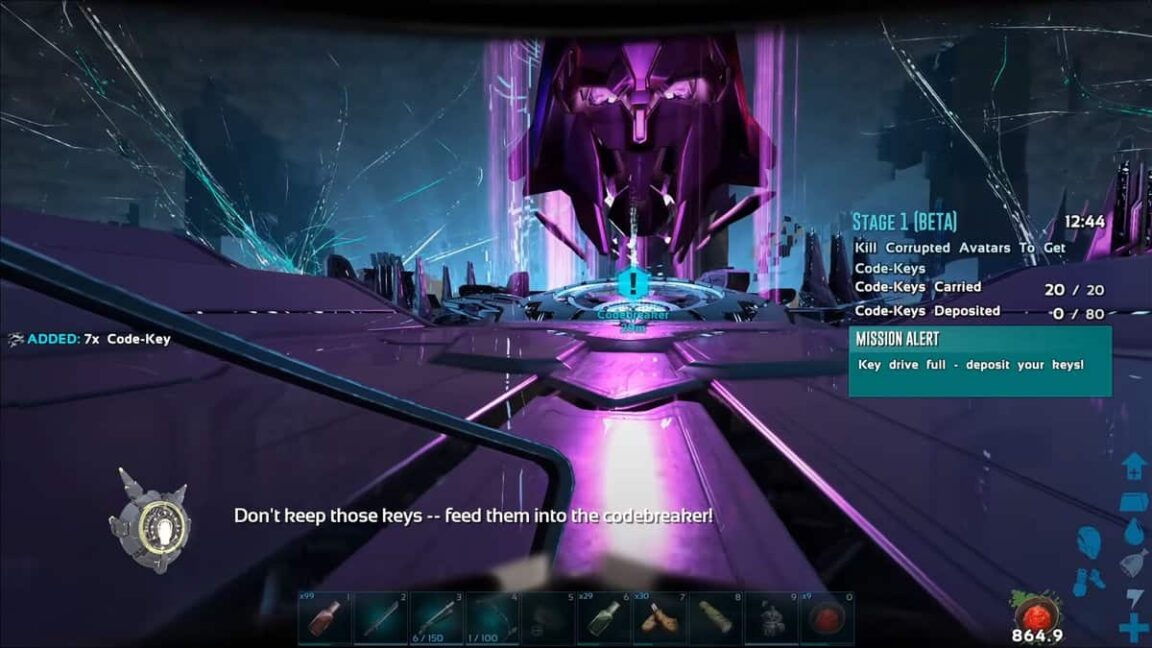Pour que le bouclier reste désactivé, vous devez constamment remettre les clés de données au briseur de code. Au fur et à mesure que le combat approche des étapes finales, de plus en plus de serviteurs dangereux et de drones d’attaque apparaîtront dans l’arène.