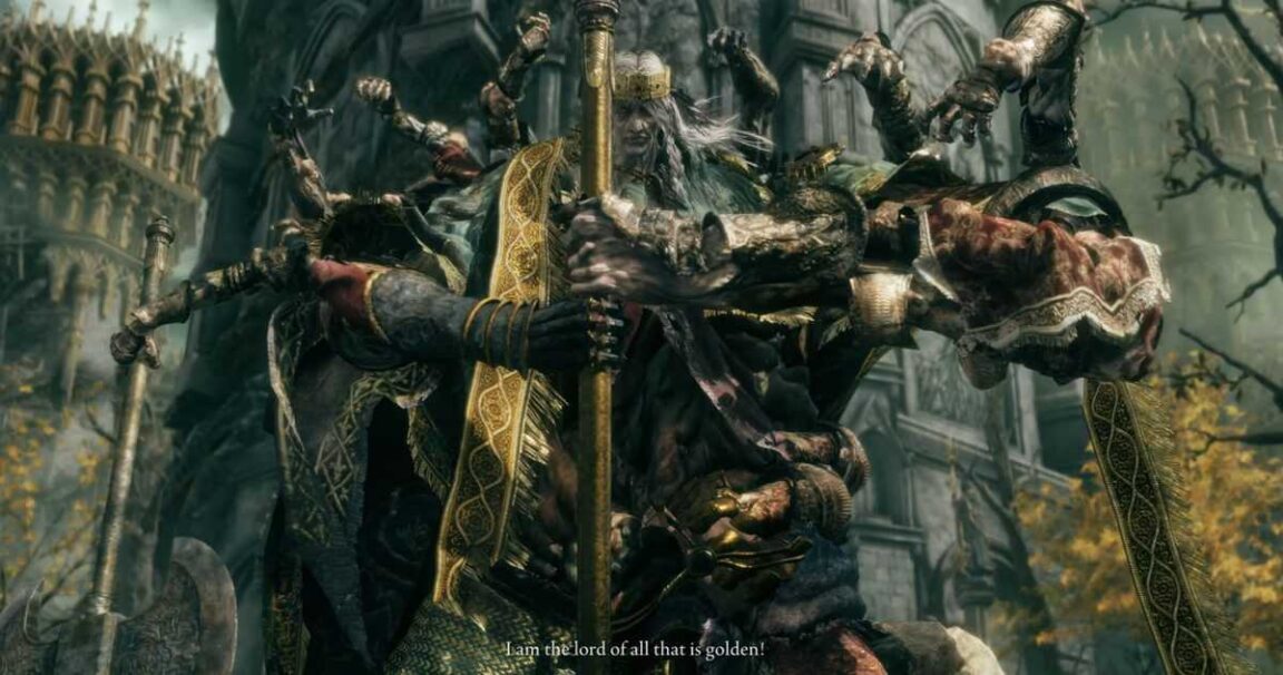 Godrick le greffé est le seigneur du château Stormveil et de l’or. Cela ressort de la hache géante qu’il porte.