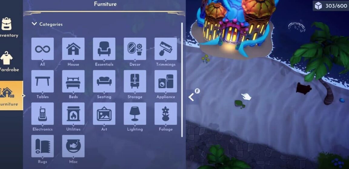 Pour déménager, il vous suffit de vous rendre au Meubles filtrer. Si vous jouez au jeu sur un PC, appuyez simplement sur F et l’écran s’ouvrira automatiquement.