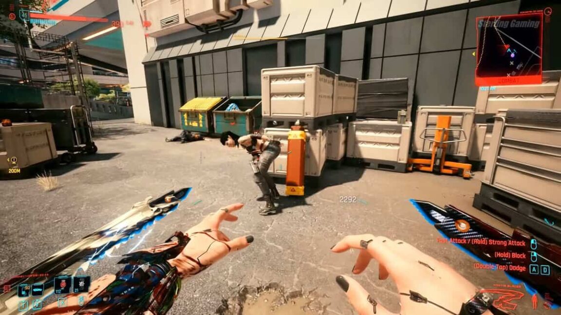 La première fois que vous venez de ce côté de la ville, Akuhara sera distrait par les affaires d’un autre ennemi. Saisissez cette opportunité pour courir vers le côté droit de l’allée. Ici, vous trouverez une boîte entourée d’un cadavre. Pillez cette boîte rapidement et quittez cette zone dès que possible. Félicitations, vous avez la légendaire paire Mantis Blade. Vous pouvez maintenant visiter l’un des quatorze Ripperdoc pour installer ces lames sans frais.