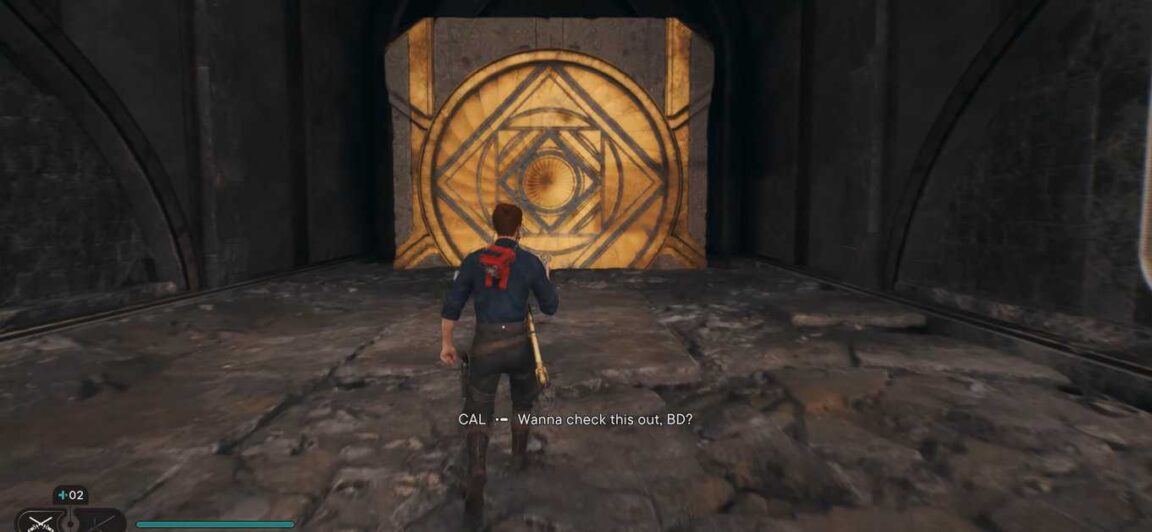 Vous rencontrerez un vide dans la première salle de la chambre. Regardez en bas à gauche et vous verrez un bloc sur lequel vous pouvez utiliser Force Pull. Traversez l’espace à l’aide du bloc et regardez en haut à gauche. Vous serez invité à retirer une plaque métallique à l’aide de la force de traction. N’allez pas plus loin.
