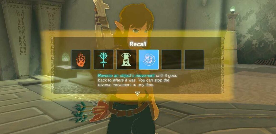 La capacité de rappel est similaire à Stasis dans Zelda BOTW mais Stasis a été utilisée pour arrêter le temps d’un objet tandis que Recall dans Zelda TotK permet à Link de rembobiner le temps pour cet objet.