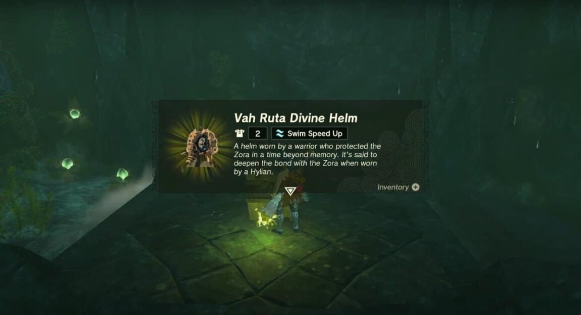 Pour obtenir le casque Vah Ruta Divine, vous devez vous rendre dans la grotte sous la cascade dans Le domaine de Zora dans la région des grandes sources de Lanayru.