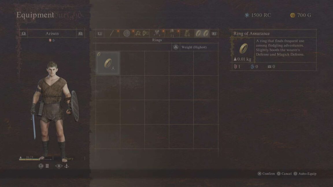 Déplacez-vous vers l’Anneau d’Assurance et sélectionnez-le pour le retirer du stockage. Pour équiper l’Anneau d’Assurance en Le dogme du dragon 2dirigez-vous vers l’onglet équipement, sélectionnez l’anneau et choisissez la main dans laquelle vous souhaitez l’équiper.