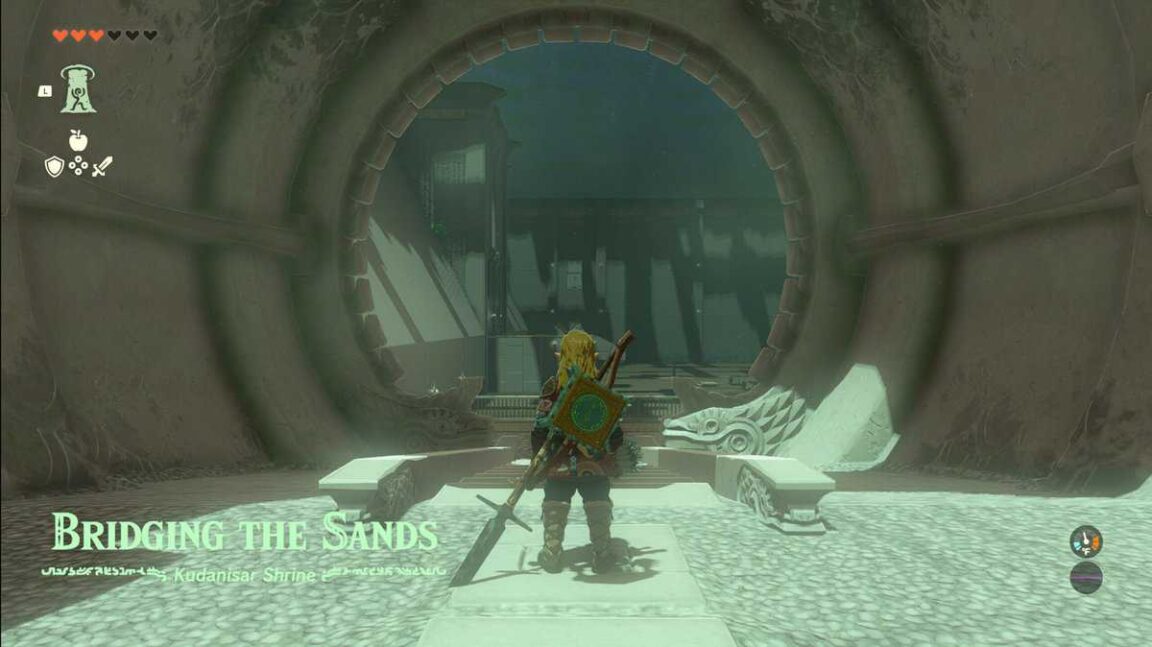 Alors que Link descend dans le sanctuaire de Kudanisar, la voix de Rauru le salue et lui présente le «Relier les sables » puzzle.