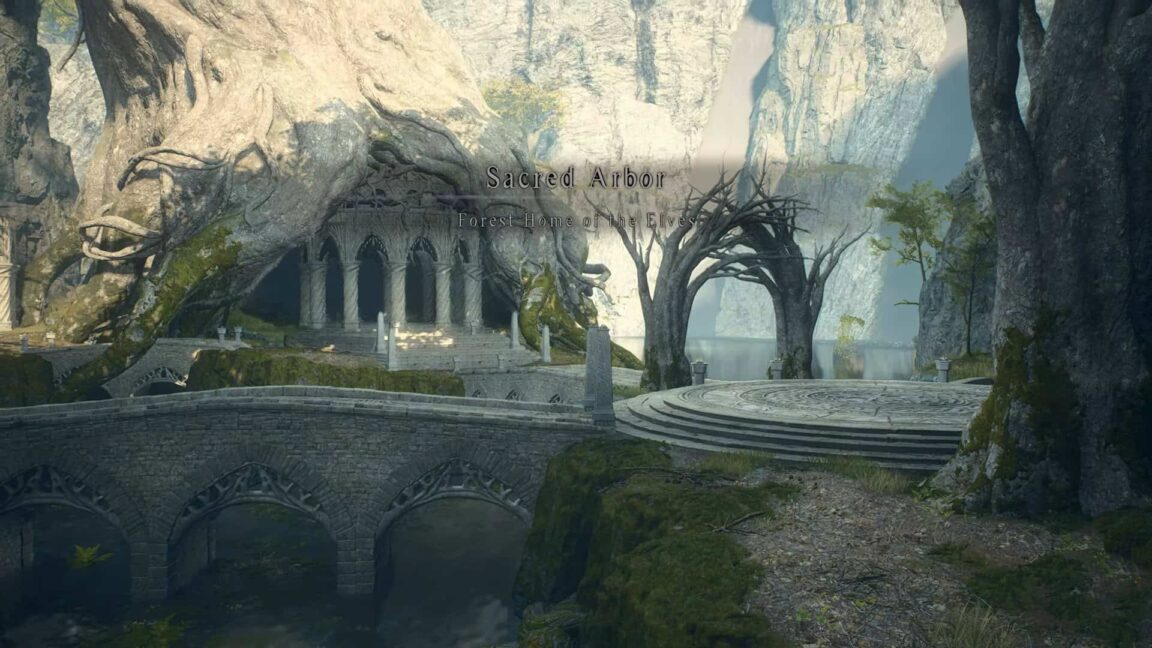 La tonnelle sacrée comprend l’armurerie de Grisha, qui propose quelques armes que vous pouvez acheter. Cependant, le principal attrait de cette zone est la série de quêtes elfiques. Cela comprend deux quêtes ; «Le cœur d’arbre malade» et « De la forêt, à la forge ». Avant de vous lancer dans ce voyage, nous vous recommandons de compléter « Résolution d’acier, Forge flamboyante » à Battahl.