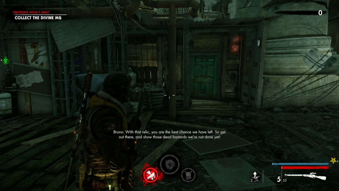 Une fois les deux leviers tirés, interagissez avec le générateur pour le mettre sous tension. Cela débloquera un coffre-fort contenant MG divine entre les caisses. Tirez un dernier levier avant de vous échapper des égouts pour obtenir l’attachement divin pour votre arme. Vous trouverez ce levier au niveau supérieur, animé par des échelles.