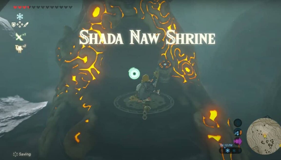 Le sanctuaire de Shada Naw dans Zelda Breath of the Wild se trouve à l’entrée d’une grotte. La grotte est située au nord de Coldsnap Hollow et au nord-ouest du sommet du pic Hebra. Le moyen le plus simple d’accéder au sanctuaire est de grimper au sommet du pic Hebra et de descendre à ski vers la grotte.