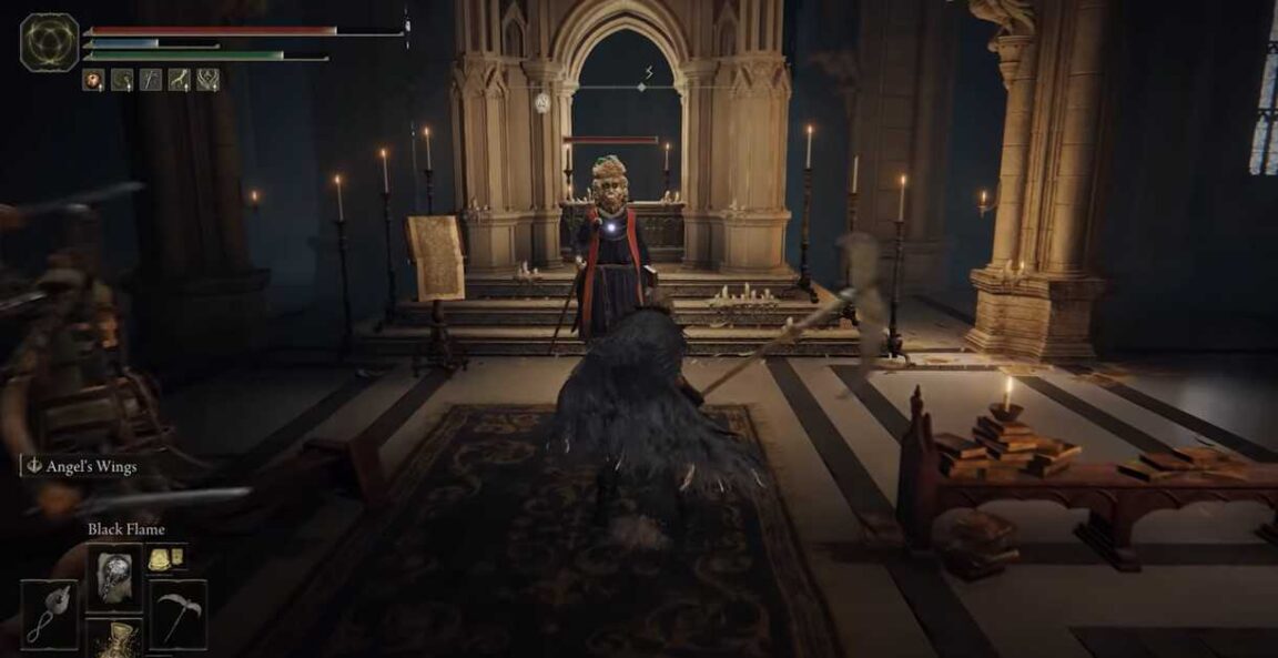 - Lame de Flamme Noire : Cette incantation vous permet d’enchanter votre arme avec la Flamme noire, augmentant considérablement vos dégâts. Cette incantation est le pain quotidien de cette construction, et son utilité augmente considérablement lorsqu’elle est utilisée avec la Cendre de guerre des Ailes d’ange.
