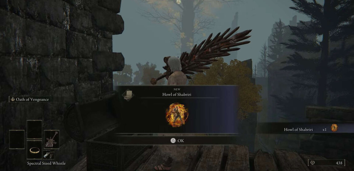 Ce sort rend également le lanceur plus vulnérable aux attaques des ennemis. Vous pouvez utiliser le Talisman du Vieux Seigneur pour augmenter la durée du Hurlement de Shabriri jusqu’à 52 secondes.